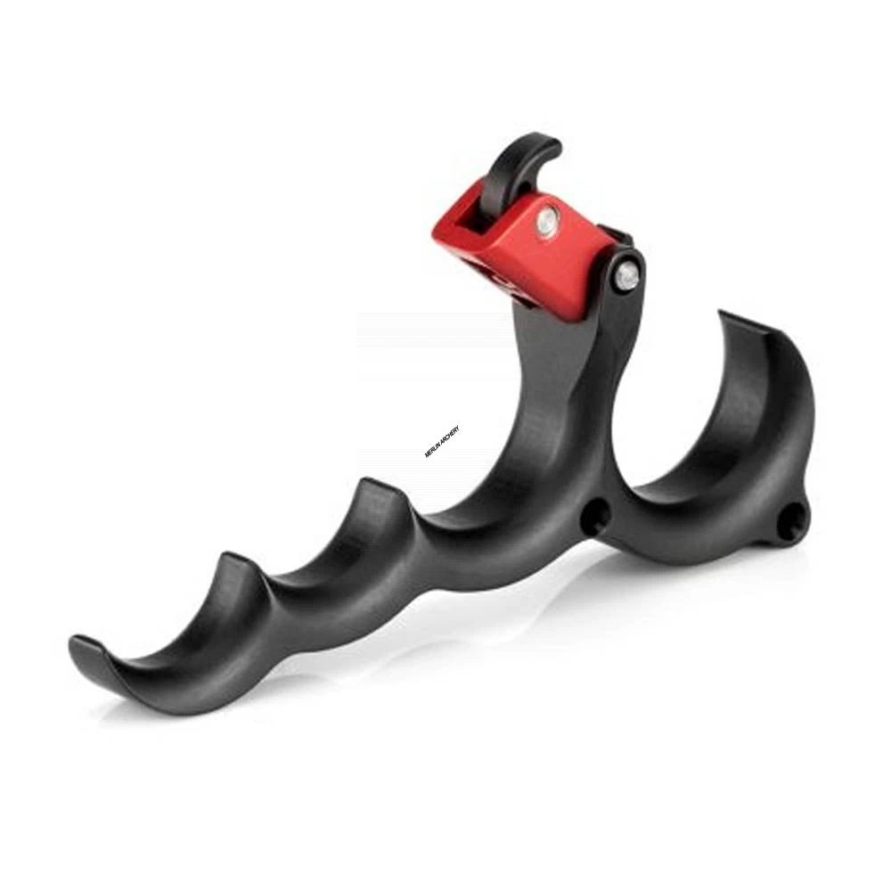 The ergonomically correct handles feature critical surface area on the inside to eliminate any pinch points. Because of its sleek and streamlined design, the X-Tacy can be held deep in the hand or further out on your fingers with no finger fatigue or tingling fingers, even after hours of shooting. The 1/2 Moon design allows for a โclickโ or โno clickโ release.